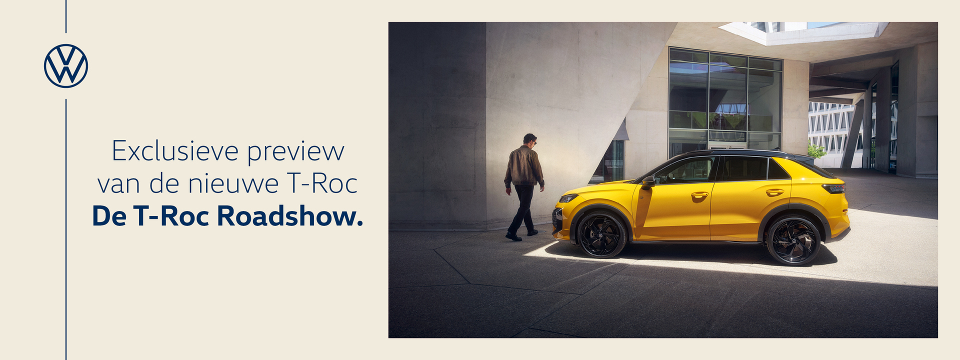Meld je hier aan om als eerste met de nieuwe Volkswagen T-Roc kennis te maken. Datum: Donderdag 16 oktober 2025 Tijd: Tussen 13:00 en 18:00 uur Locatie: Caballero Fabriek, Saturnusstraat 60, Den Haag heer/ mw* man vrouw Voornaam*TussenvoegselAchternaam*E-mailadres* Telefoon*Aantal personen1234